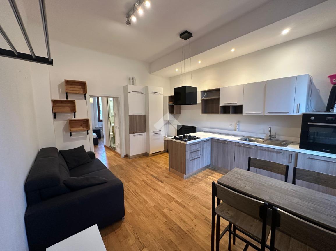 L’appartamento, recentemente ristrutturato, si compone di ingresso su soggiorno con cucina a vista, camera da letto matrimoniale, bagno finestrato con box doccia.